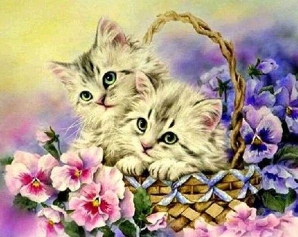 Flowers & Kittens in Basket Flowers & Kittens in Basket
