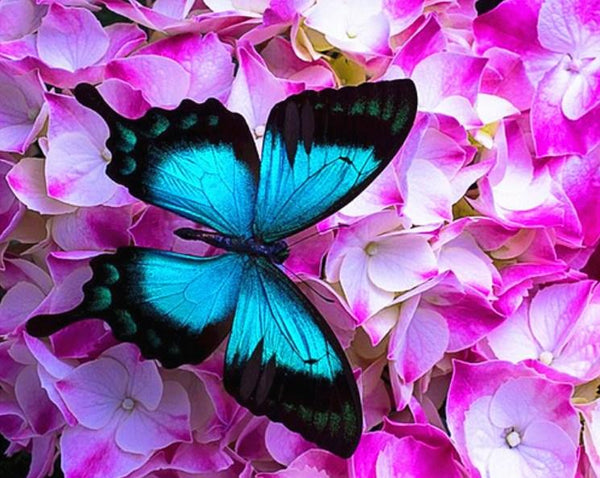 Pink Flowers & Blue Butterfly Pink Flowers & Blue Butterfly